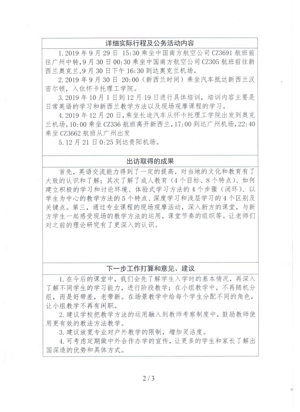 关于陆端等9人赴新西兰怀卡托理工学院研修情况反馈的公示