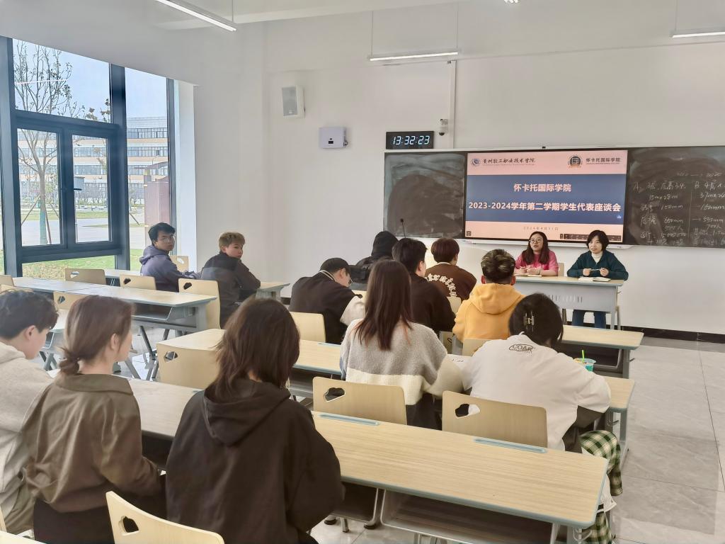 座谈会上,张嫒婷副院长协同怀卡托国际学院教学管理科工作人员就学生围绕排课、课程设置、授课方式等提出的问题,向参与座谈会的学生代表作耐心地解答与深入的讨论。随后,张嫒婷副院长着重就学院学生出国境升学政策、大三年级岗位实习安排以及将于近期开展遴选学生赴国境外研修学习的情况向学生代表一一进行传达,并希望学生代表在班级广泛宣传。