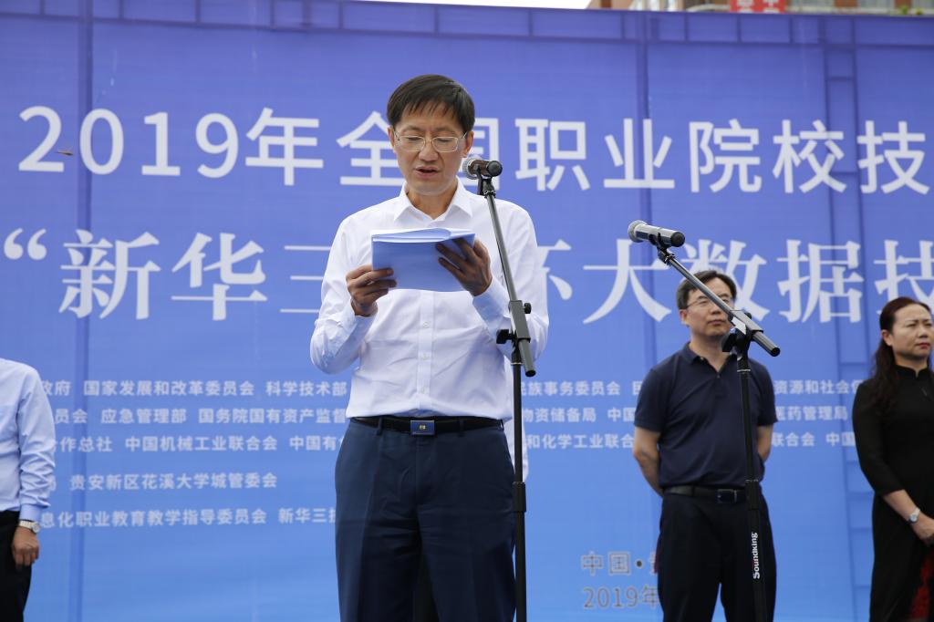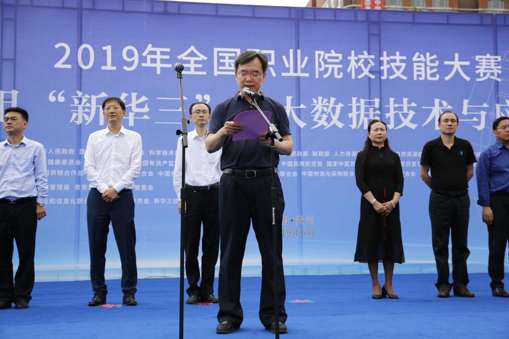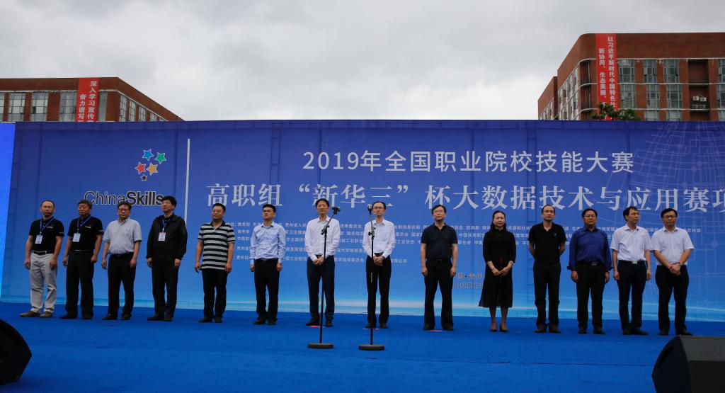 6月12日下午,2019年全国职业院校技能大赛“新华三”杯高职组大数据技术与应用赛项比赛在我院开幕。交通运输部人事教育司副司长时俊,贵州省人民政府副秘书长周明勤,贵州省教育厅厅长邹联克,贵州省大数据发展管理局副局长景亚萍等领导出席开幕式。