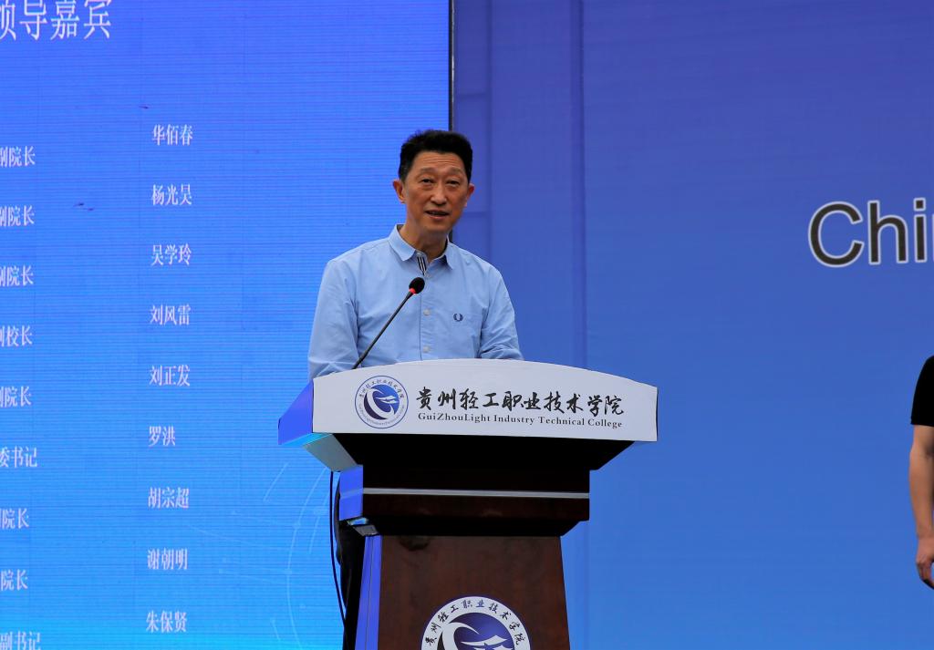 贵州省教育厅厅长邹联克致辞。他代表贵州省教育厅向出席活动的各位领导和嘉宾表示热烈的欢迎,对协办本次比赛的bwin必赢作出大量努力的工作表示肯定,向参加大赛的同学们致以良好的祝愿。他表示,大赛组委会今年继续将“大数据技术与应用”赛项放在贵州举办,是对贵州实施大数据战略的鼓励、对贵州职业教育改革发展的肯定和鞭策,必将对贵州大数据产业发展产生深远的影响,让贵州职业教育改革焕发新的活力。最后,他希望bwin必赢以此为契机,秉承“团结奋进、拼搏创新、苦干实干、后发赶超”的新时代贵州精神,虚心向全国同行学习,不断总结承办大赛经验,在全国大赛组委会的指导下,按照“精彩、专业、安全、廉洁”的总要求,提供更加优质的赛事服务工作,着力把大数据赛项打造成全国技能大赛品牌,把大数据赛项承办工作办成彰显贵州职教特色文化的一张“新名片”,办好大赛向新中国70华诞献礼!