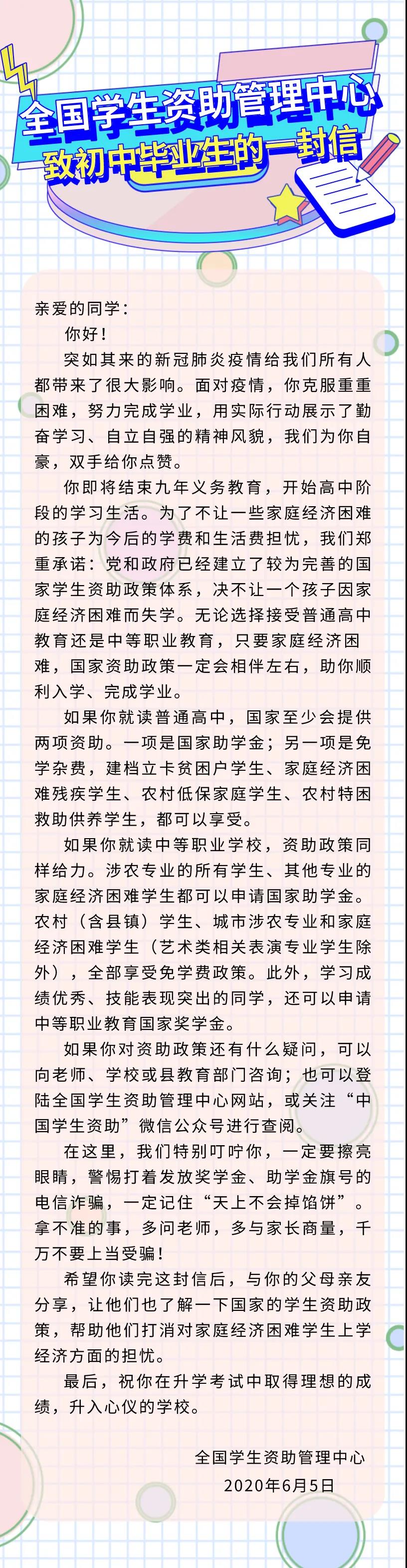 下一篇:转:全国学生资助管理中心致高中毕业生的一封信