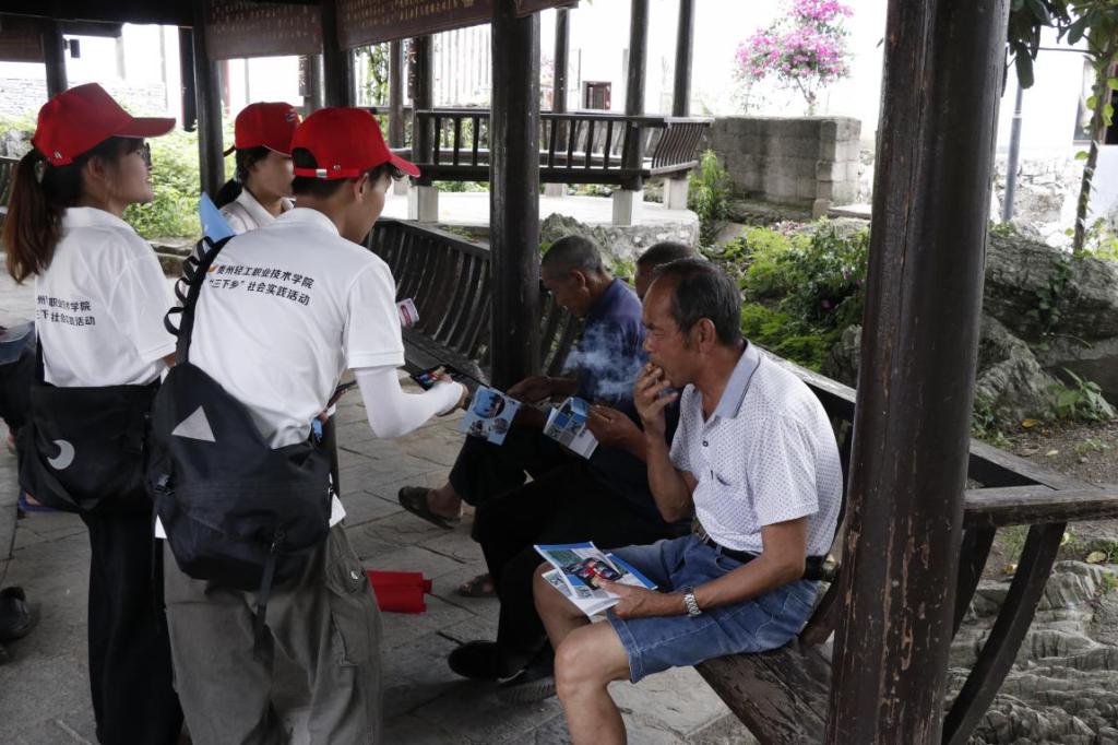 为提高群众的禁毒意识,2023年7月7日,团委的周菀娇、魏艳、赵谦老师组织“源于心·梦随行”三下乡社会实践志愿服务队深入青岩镇山王庙村、龙井村开展禁毒宣传活动。