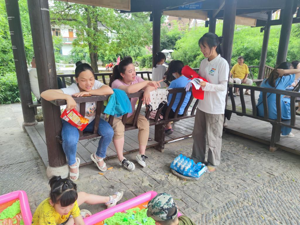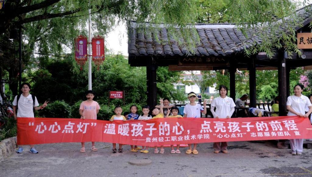 2023年7月9日,团委的周苑娇,魏艳,赵谦老师组织“源于心 梦随行”三下乡社会实践志愿服务队深入青岩镇山王庙村、龙井村开展星星点灯“多彩光谱”教育宣传活动。
