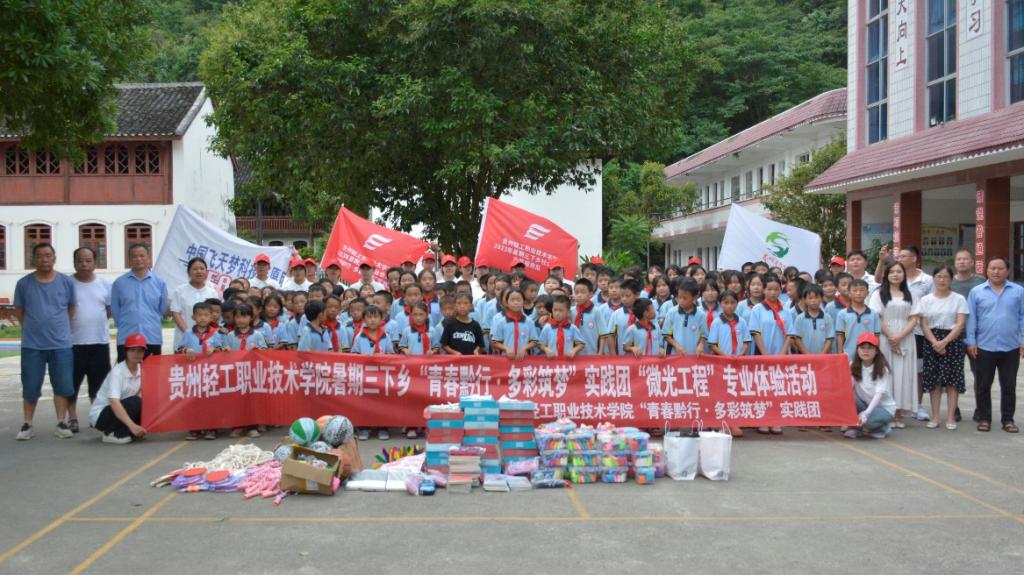 为落实2023年全国“三下乡”社会实践活动“多彩贵州”专项活动,通过实地观察、现场体验、深入调研党和国家大踏步发展的“贵州缩影”,以及“春晖行动·风筝计划”省级专项计划,充分发挥学生春晖(服务)社的组织功能和社会功能,践行“尽孝、感恩、反哺、回报”的理念,在投身中国式现代化的贵州实践中成长成才和贡献力量。7月7日下午,“青春黔行·多彩筑梦”实践团师生赴荔波县瑶麓民族小学,开展“微光工程”职业体验活动。