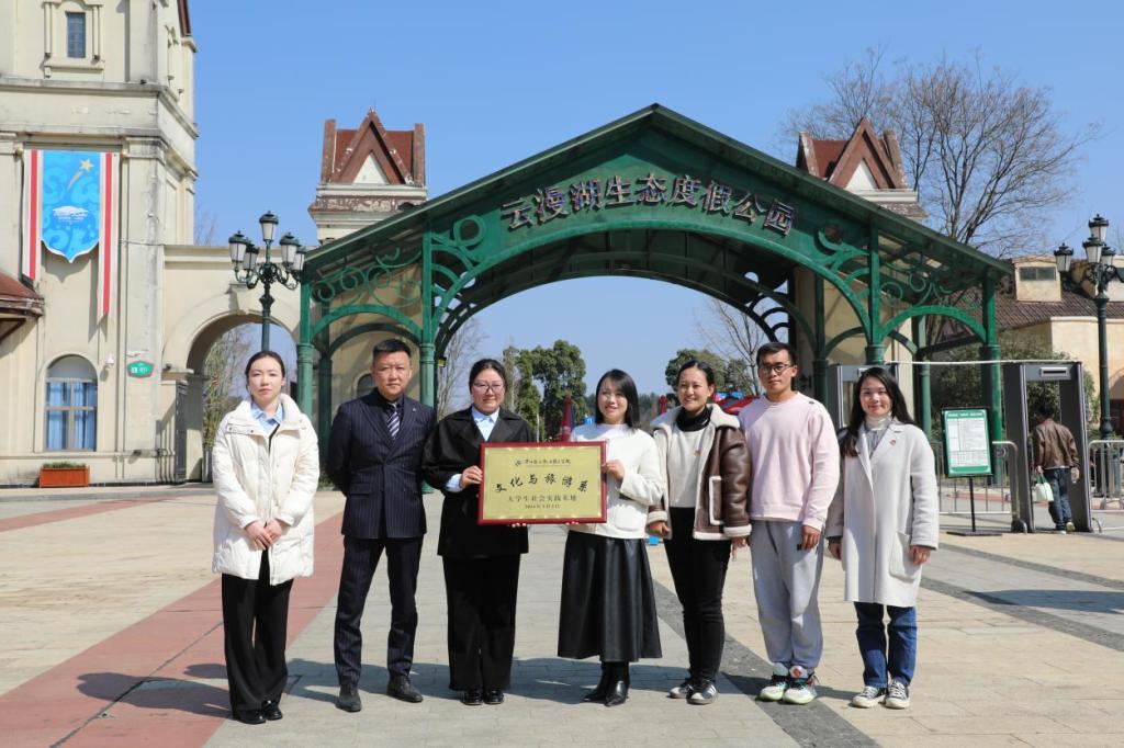 活动最后,文化与旅游系学生社会实践基地挂牌仪式在云漫湖生态度假公园隆重举行,社会实践的建立,不仅为学生打造了一个很好的教学实践平台,而且还为双方今后校企广泛合作提供了一个很好的交流平台。