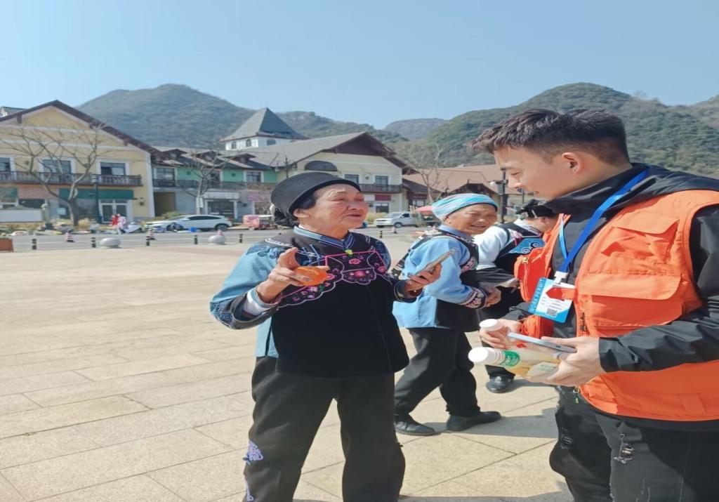 (正在给游客和居民做宣传的志愿者)