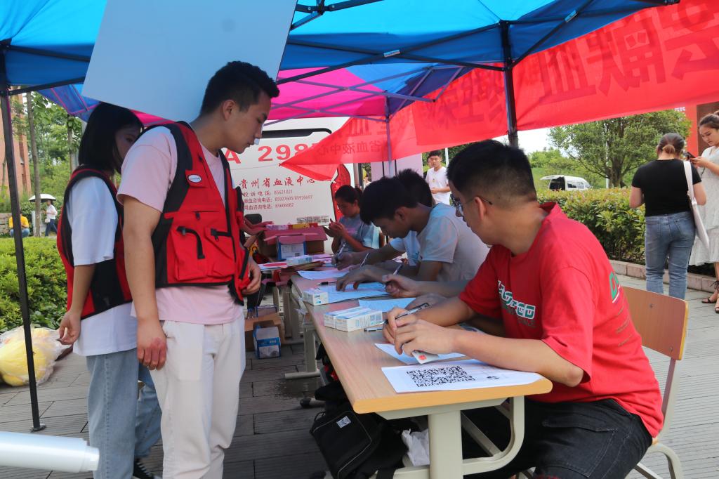 在第16个“世界献血日”来临之际,贵州省血液中心在我院一食堂门口举行为期一周的献血活动。活动现场,不少同学主动咨询志愿者服务队,进行登记、采样、献血。活动整周,医护人员从近630个参与献血的同学、职工身上采集了600个单位左右的血量。(1个单位血量等于200毫升血液)。