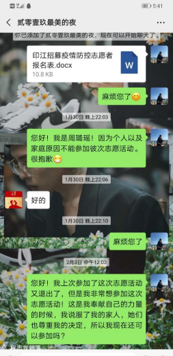 她每天要去到县里的各个社区排查,挨家挨户开展疫情入户摸底排查,并宣传疫情防控知识。她在进行宣传工作的同时,不断地帮助外出采购生活用品的‘户代表’送东西。几日连续工作下来,每天都要步行四十多分钟到达执勤地的周璐瑶感到有些疲惫,但她依旧鼓励自己要坚持,在周璐瑶看来虽然这次疫情来势汹汹,但是和她一样的志愿者们每个人都在努力的与病毒做抗争着,她没有理由退缩和放弃。