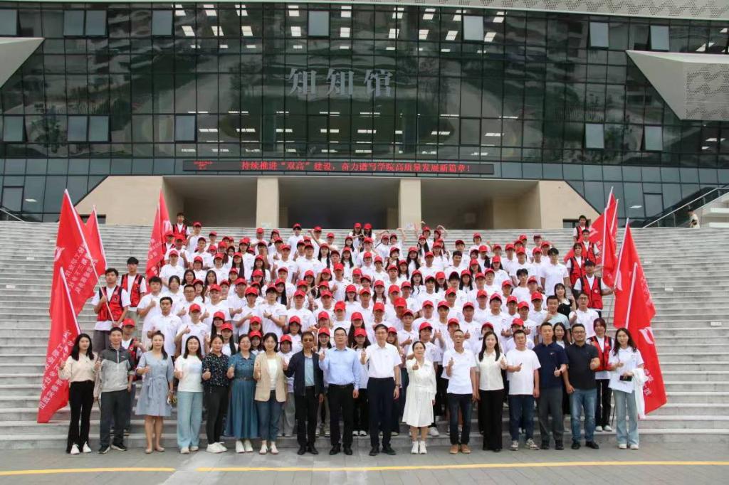 各系部党总支领导为各系部志愿服务队授旗,樊铁钢书记为院团委直属队及2024年“三下乡”社会实践活动团队授旗。