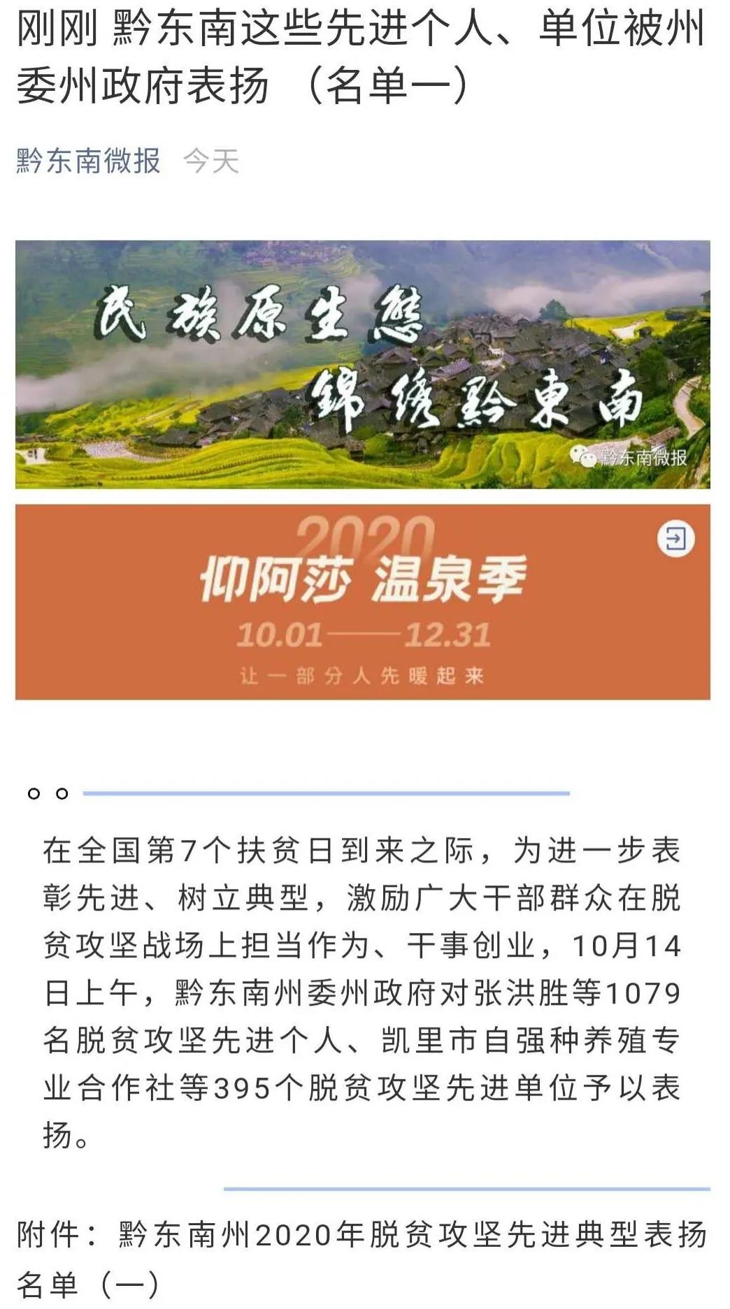 10月14日,在国家扶贫日即将来临之际,黔东南州委、州政府表彰—批奋战在脱贫攻坚—线的帮扶干部。我院派驻剑河县革东镇麻栗村第—书记田景烈、派驻剑河县柳川镇乃寿村第—书记蔡涛均荣获“优秀援黔东南干部”表彰。