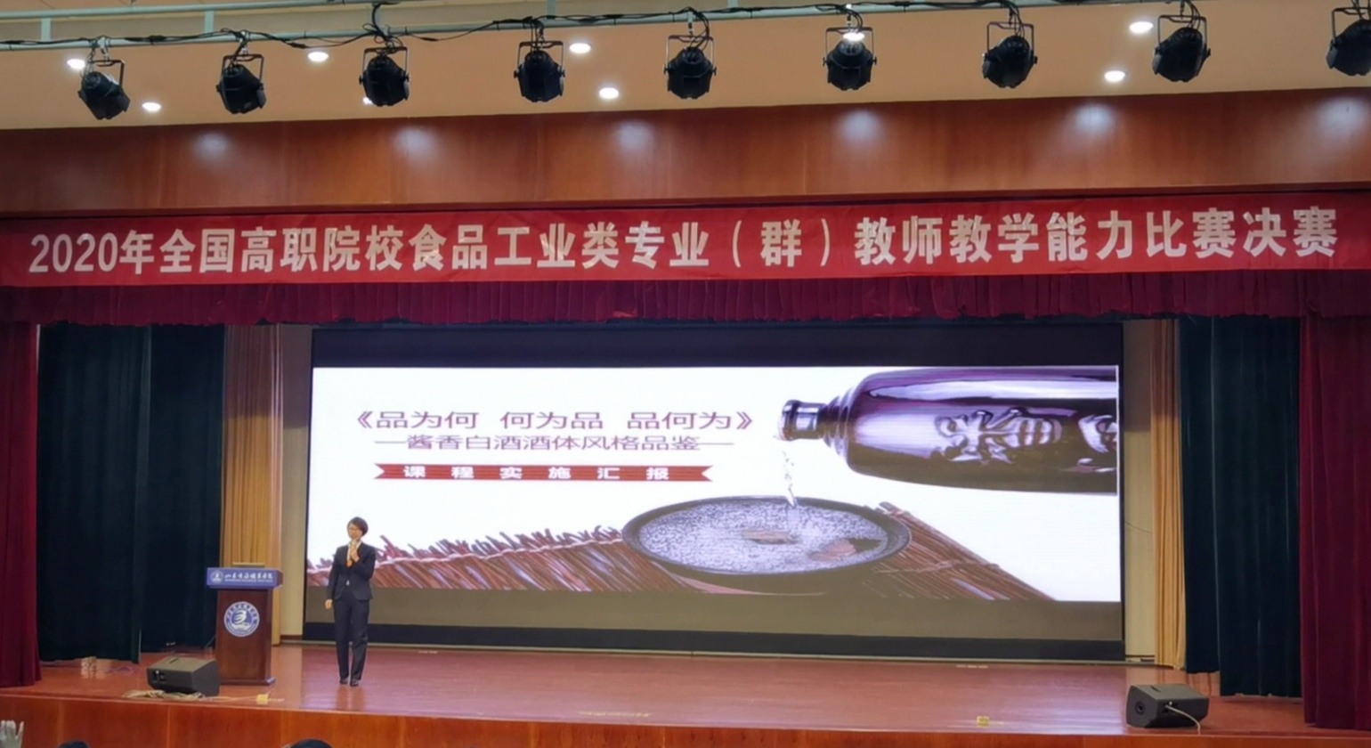 11月21至22日,2020年全国高职院校食品工业类专业(群)教师教学能力比赛现场决赛在山东省烟台市山东商务职业学院落下帷幕。经前期对全国各高职院校的60余份参赛作品进行网络初评后,30余份参赛作品入围现场决赛环节。轻工化工系《白酒勾兑与品评》课程组成员王力、沈晖、邹妍、何丝汀以作品《品为何 何为品 品何为——酱香白酒酒体风格品鉴》参加了本次教学能力比赛,并顺利通过网络初评后进入现场决赛环节。决赛现场,课程组成员就参赛作品进行了现场讲解和模拟实际教学。经过激烈的角逐,课程组作品夺得专业一组一等奖。