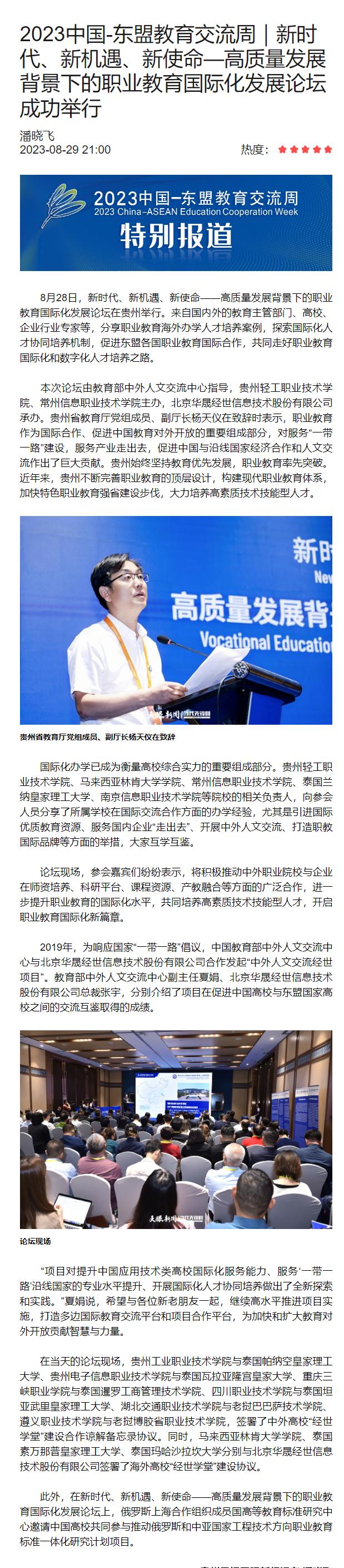 下一篇:2023中国-东盟教育交流周|武斌儒:融输并举 打造“贵州轻工”职...