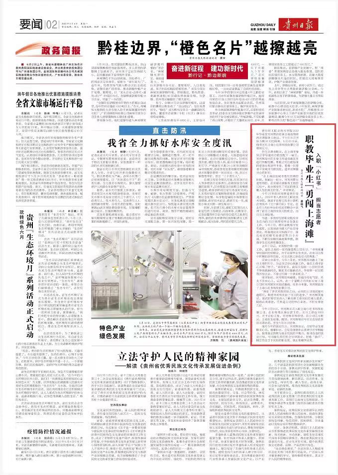 《贵州日报》纸质版2022年6月6日第2版《入职“小红书” 担当志愿者职教毕业生“勇闯上海滩”》对我院2022届信息工程系计算机应用技术(云计算方向)专业毕业生宋再辉在上海做防疫志愿与求职事迹进行报道。下面为原文内容: