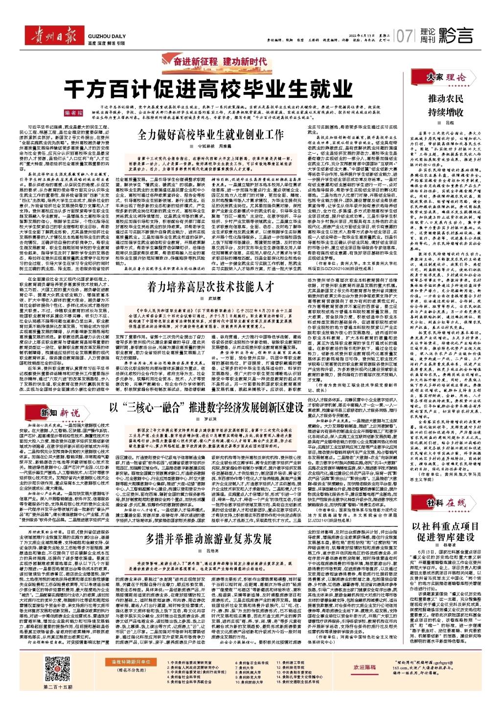 《贵州日报》6月15日第07版刊载我院党委副书记、院长武斌儒文章《着力培养高层次技术技能人才》,探讨在新职教法施行背景下,实现职业教育现代化高质量发展的举措。下面为原文内容: