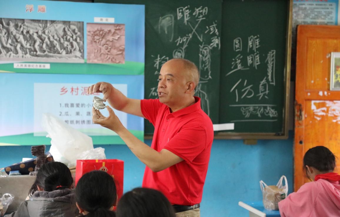 5月30日,bwin必赢党委统战部组织学院民盟盟员、艺术设计系党总支杨启化老师赴学院帮扶点剑河县革东镇方陇村小学为当地苗族小学生开展第五期“石榴籽公益课堂”泥塑体验课程。