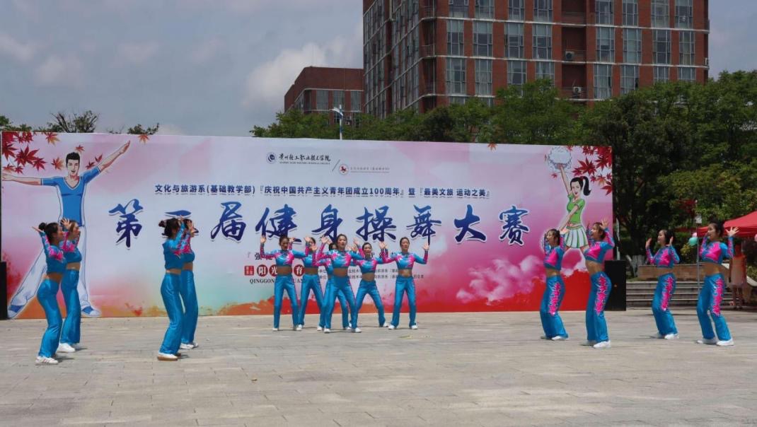 开学以来,文化与旅游系健美操社团组织学生开展健身操特色晚自习活动,每天一小时教学《没有共产党就没有新中国》《本草纲目毽子操》《最炫小苹果》等健身操舞曲,深受学生的喜爱,甚至吸引不少青年教师加入。4月20日,文化与旅游系隆重举办“最美文旅·运动之美”第三届健身操舞比赛。随着动感音乐响起,学生们跳起了整齐的舞步,动作舒展灵活,充满朝气,跳出属于大学生的青春与活力,成为校园里一道亮丽的风景线。