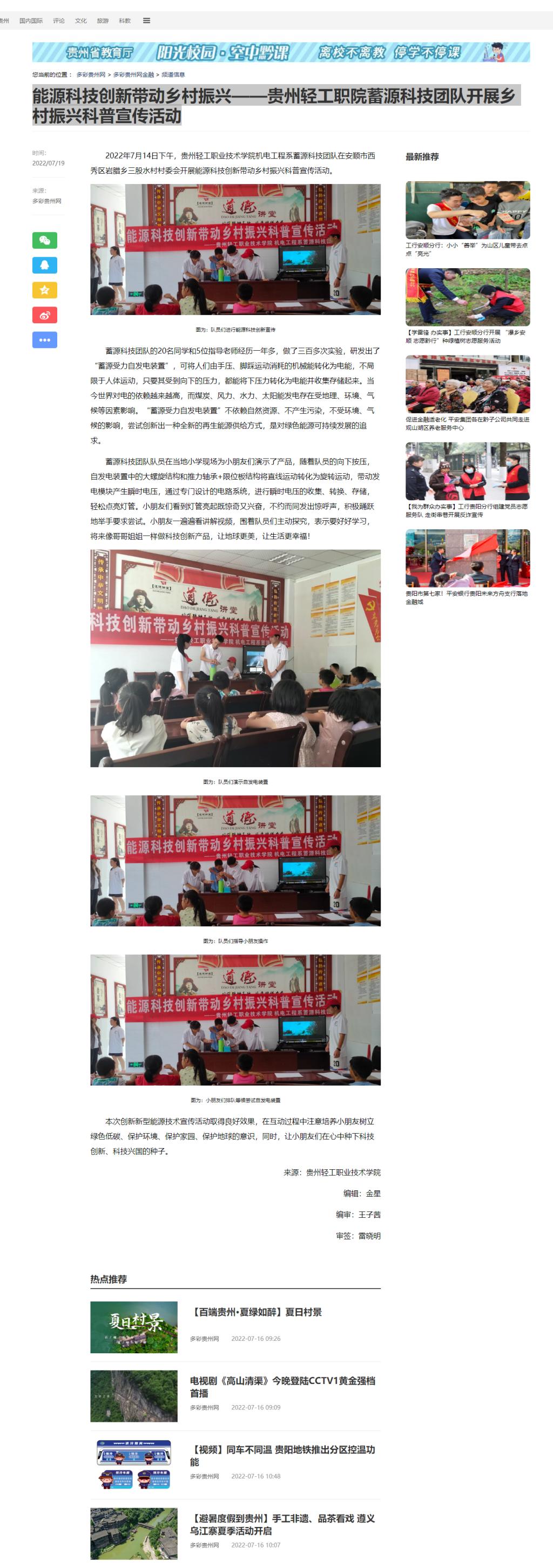 下面为原文内容:2022年7月14日下午,bwin必赢机电工程系蓄源科技团队在安顺市西秀区岩腊乡三股水村村委会开展能源科技创新带动乡村振兴科普宣传活动。