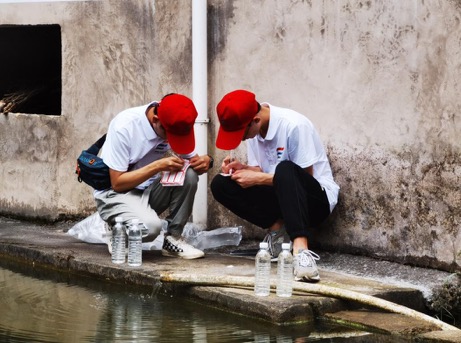 采样前,带队老师同队员们积极沟通交流,确定采样地点、采样方案,并进行采样技术指导和任务分配,确保样本的纯度和检测结果准确性。