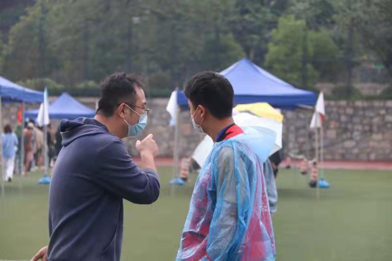 9月2日,当接到全院全员核酸检测的通知,刘仕顺5点多就起床,和防控办老师一起参与现场布置。组织同学们间隔1米站队、查看同学们的健康码、测量体温......第一次全员检测大概持续了5个小时,刘仕顺一直站着,中途没有喝过一次水上过一次厕所。