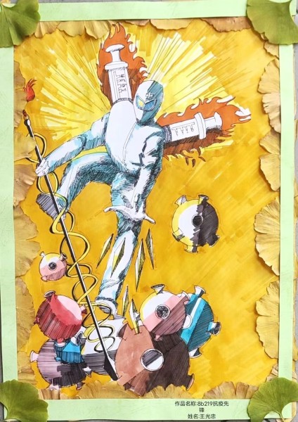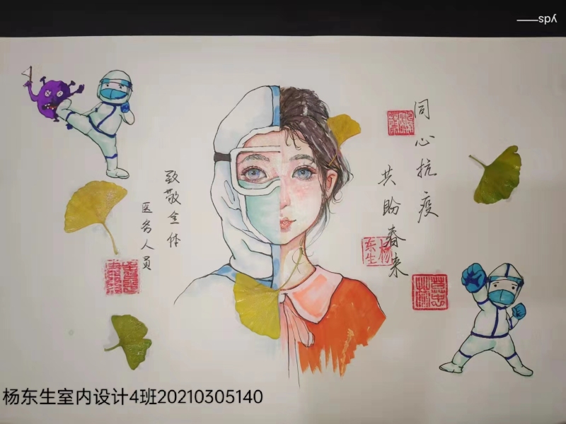 “疫情大考考验着我们每一个人,因为有这么多冲锋在前的一线人员,我们才得以安心学习生活,我特别想对一线人员说,‘杏’好有你,守护着我们,你们辛苦了。”艺术设计系学生王健梅在谈论创作初心时说。