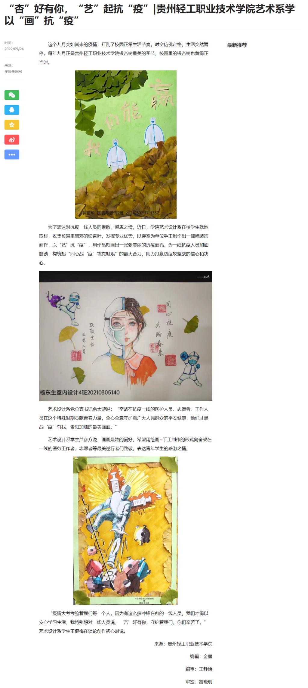 艺术设计系党总支书记余太游说:“奋战在抗疫一线的医护人员、志愿者、工作人员在这个特殊时期贡献青春力量,全心全意守护着广大人民群众的平安健康,他们才是战‘疫’有我,贵阳加油的最美画面。”