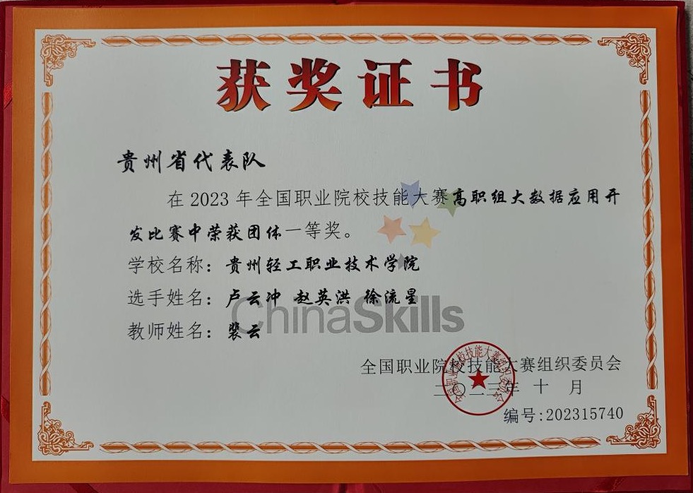 10月23日,2023年全国职业院校技能大赛高职组大数据应用开发赛项在海南博鳌举行,来自全国各省和直辖市的64支代表队参赛。赛事首次采用师生同赛赛制,经过激烈的比拼,bwin必赢裴云老师率领卢云冲、徐流星、赵英洪三名同学以超强的实力和卓越的技能,取得了一等奖第一名的优异成绩!