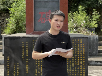 活动伊始,黄艺和梁善勇两位同学为大家讲述了红军英雄烈士们在二郎镇背水战和开仓分盐的故事。通过他们的讲述,服务队员们深刻认识到和平的来之不易,明白了我们应当永远缅怀先烈,铭记历史,传承英烈精神。