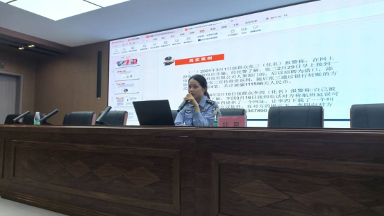 活动中,钱晨警官以网络信息安全为主题,教育学生自觉抵制网络不良信息、校园暴力、诈骗等不法行为,引导学生远离毒品和非法校园贷等,通过授课讲解、现场演练、展示图片数据及生动鲜活的警示案例等方式深入普及,让学生将安全意识根植于心,践行于实际生活中。