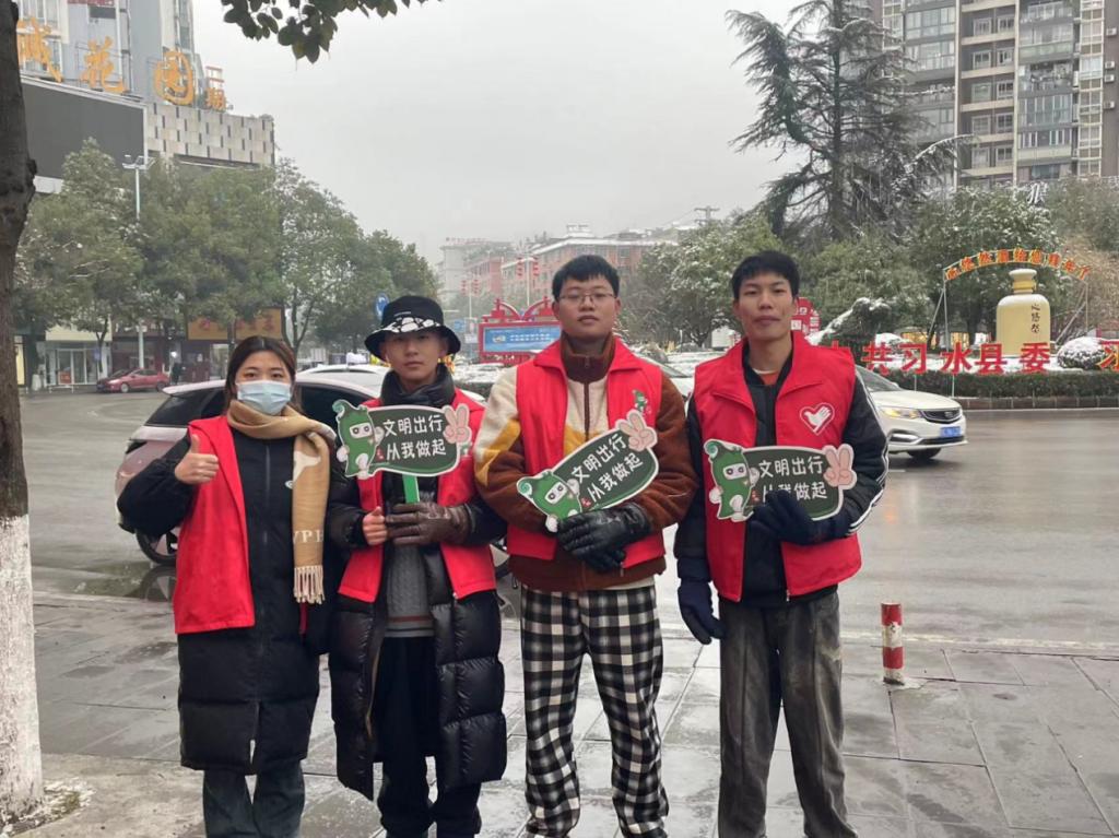 2023级建设工程管理1班罗星星积极参与了宣讲“青骑兵”敲门行动、抗凝防“冻”,习水青年在行“冻”志愿服务活动、习水县2024年春节联欢晚会志愿者等活动。对习水县九龙街道住户开展敲门行动入户,开展了《消防安全常识二十条》《冬季防火、清剿火患、全民消防、生命至上》《春节期间烟花爆竹安全条例》《春节假期期间安全行车》等宣讲活动,走访十余户住户,覆盖五十余人。