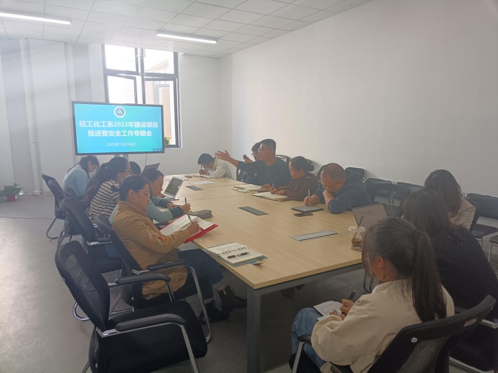 为确保系部2023年建设项目安全、有序推进,10月16日,轻工化工系召开了2023年项目推进暨安全工作会。会议由系主任王珂佳主持,轻工化工系党总支书记张平、系副主任黄洪媛、各项目负责人、项目监理及实训管理科相关工作人员参会。